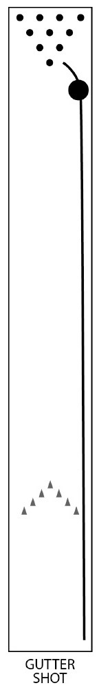 Despite the fact that a gutter shot can be extremely effective, it can also result in disaster. It is imperative this type delivery be executed with a closed shoulder; that is, the shoulder of the bowling arm must be positioned slightly forward of the non-bowling shoulder. Any ball delivered with the bowling shoulder open, even slightly, will inevitably head for the gutter. Therein lies the importance of intestinal fortitude for executing this maneuver. In short, gutter shots are not designed for the faint-hearted.