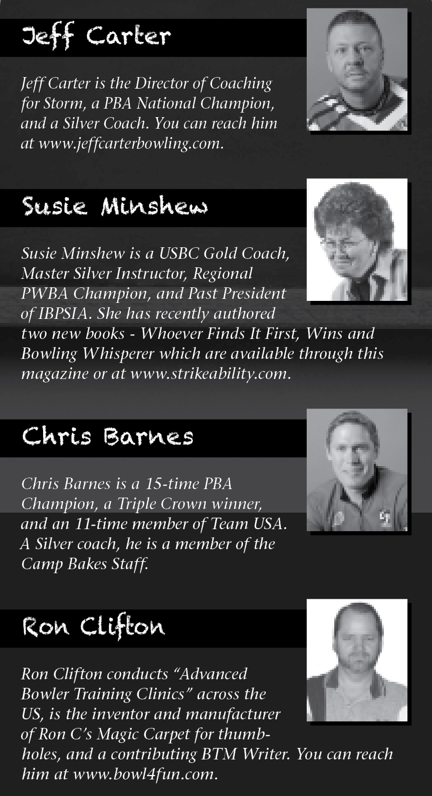 Welcome a new contributor to the Round Table, PBA Champion and Silver coach Jeff Carter. He’s one of the successful coaches who will be leading us through a discussion on two interesting questions. Our first topic deals with the best way to handle getting coaching advice from multiple sources. I think the second question is a great one. I’m really interested to see how our experts respond to the question of whether it more important to have good results or good technique. Here’s our panel and what they have to say.