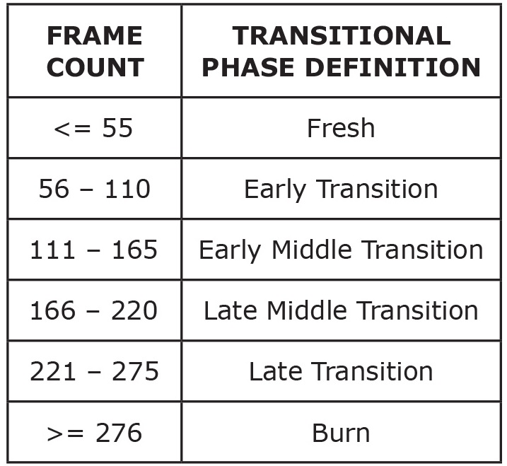 To accomplish this, it is vital to define transition by first shot frame count. Just as launch angle is defined due to the 11 foot and 15 foot sensors on a lane with C.A.T.S., the frame count transitional phases will be defined to place performance within a context of first shots.