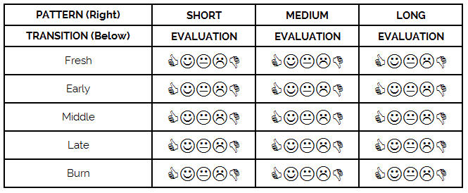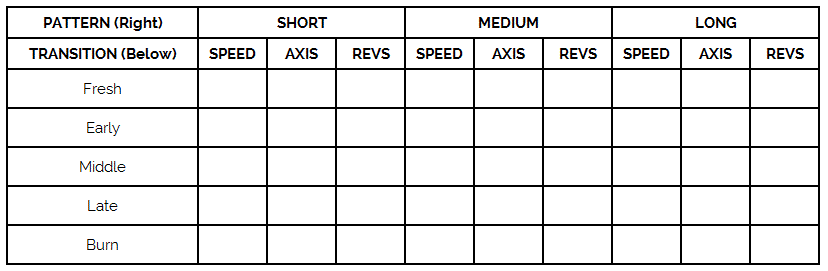 Evaluate your abilities within the context of pattern type and phase of transition. This will define your assets and liabilities when bowling in competition. How good are you on these pattern types?