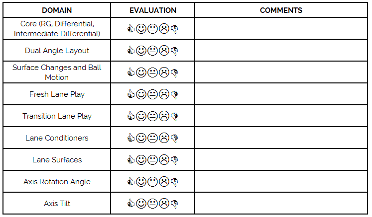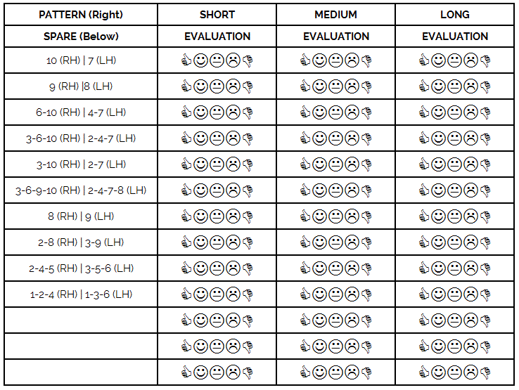 To determine important practice focus points, determine your level of comfort playing these zones in the front part of the lane. Add specific comments to discuss frequency of practice time to play these zones or competition experiences.