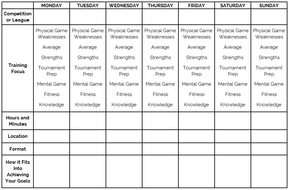 From the process of self-reflection and self-evaluation, build a training schedule to address your areas of weakness as well as focus on the areas in which you want to learn more. Your resolutions to improve in these areas can be guided by dividing your time according to specific focus points. I recommend spending the following percentages on identified areas: