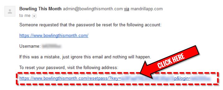 3) Check your email. You should see a message from Bowling This Month titled “Bowling This Month Password Reset“. Open the email to view its contents.
